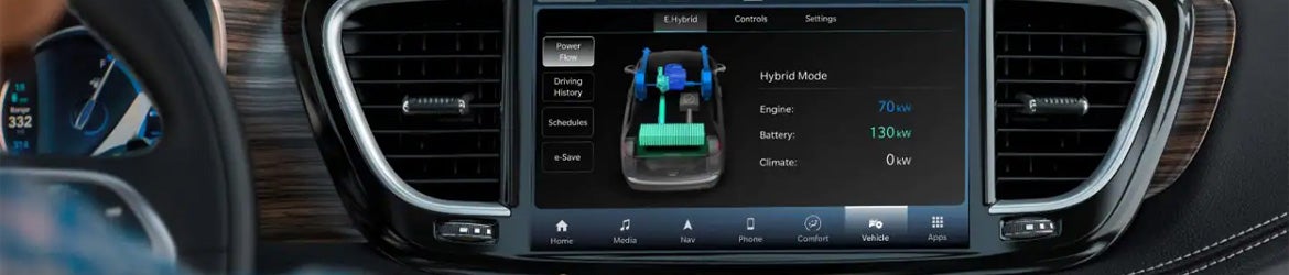 Technology in the Pacifica Plug-In Hybrid includes a 10.1-inch touchscreen, wireless Apple CarPlay and Android Auto, Amazon Alexa, satellite radio, and Bluetooth for up to two devices to connect at the same time. The Limited upgrades the six-speaker stereo to a premium Harman Kardon system and adds navigation. You can also get a rear-seat entertainment system with two 10.1-inch touchscreens.