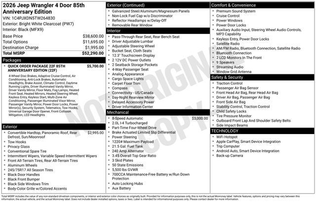 2026 Jeep Wrangler 85th Anniversary 4 Door 4x4