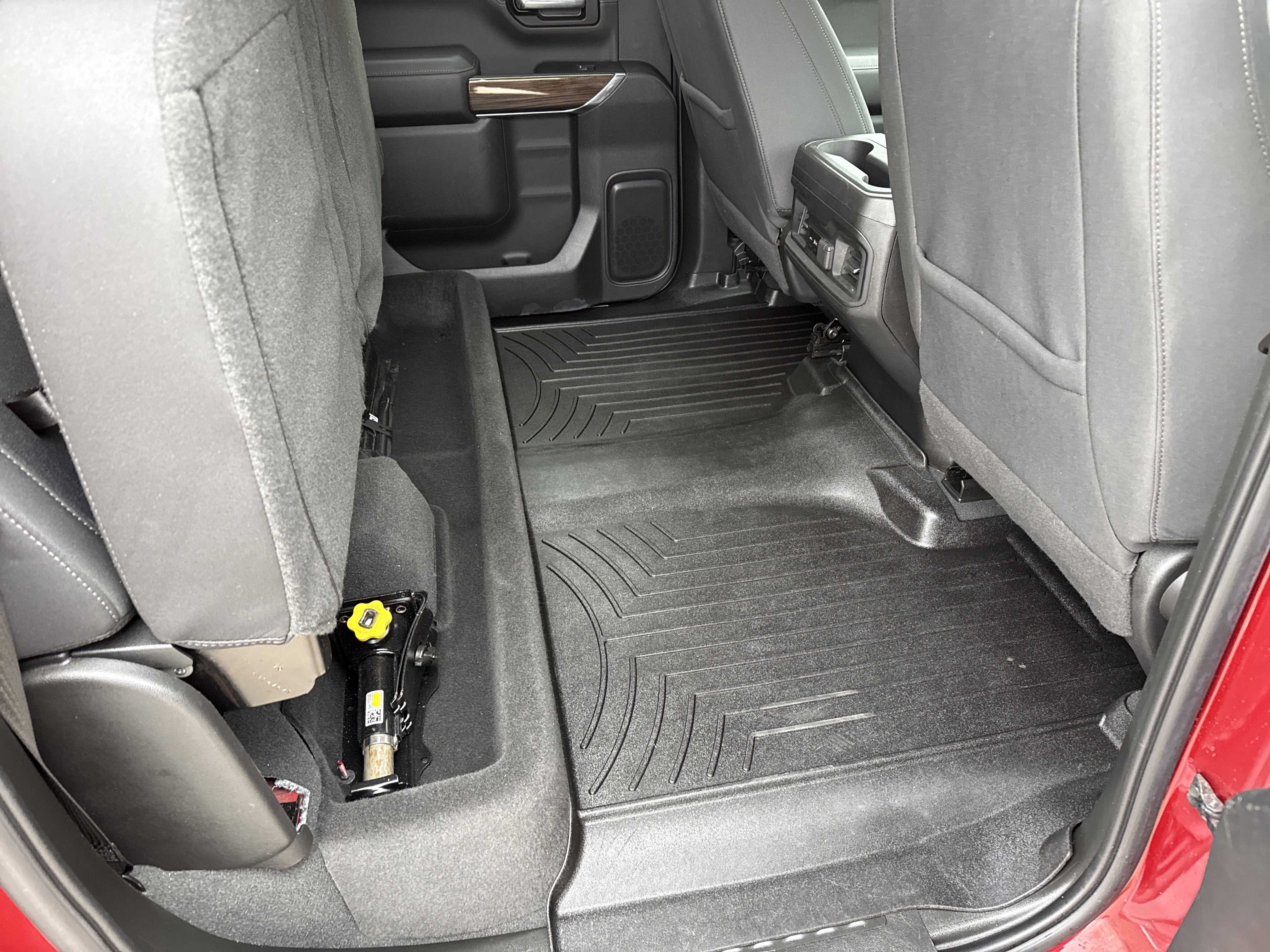 - Seat, Cloth Rear with Storage Package 60/40 folding bench for Crew Cab models, includes seatback storage on left and right side, center fold out armrest with 2 cupholders, (includes child seat top tether anchor)